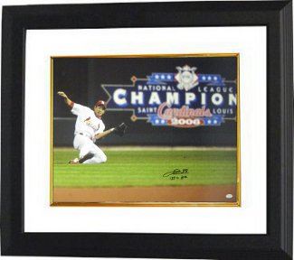 So Taguchi is a Japanese former outfielder. He played eight years in Major League Baseball with the St. Louis Cardinals, Philadelphia Phillies and Chicago Cubs, followed by a final two years in Japan with the Orix Buffaloes. Taguchi is the first Japanese National League player to win a World Series. Taguchi is also the first Japanese player to win two World Series with different teams, with the St. Louis Cardinals in 2006 and the Philadelphia Phillies in 2008. So Taguchi has hand signed this St. Louis Cardinals 16x20 Photo from the 2006 World Series (in English and Japanese). Leaf Authentics Hologram and Certificate of Authenticity from Athlon Sports. Custom White Mat and Premium Black Frame as shown.