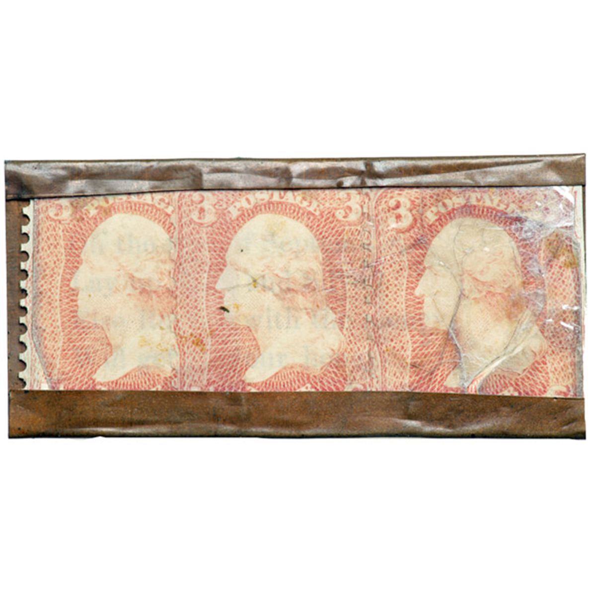 So-called Feuchtwanger Strip of Three 3c Stamps, HB-unl