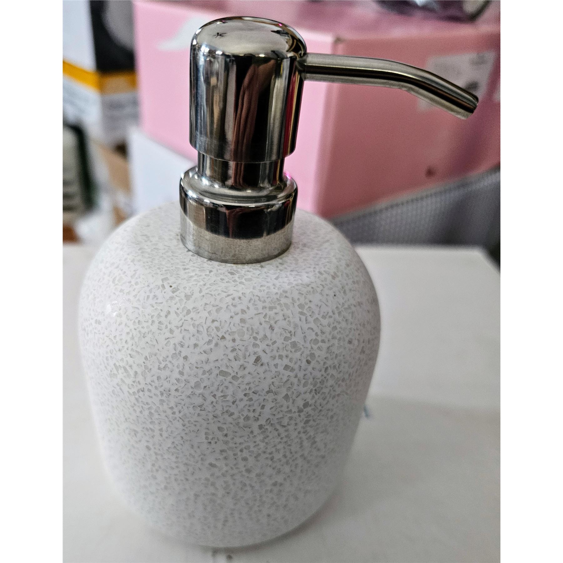 Ceramic liquid soap dispenser, stylish speckled design, new.