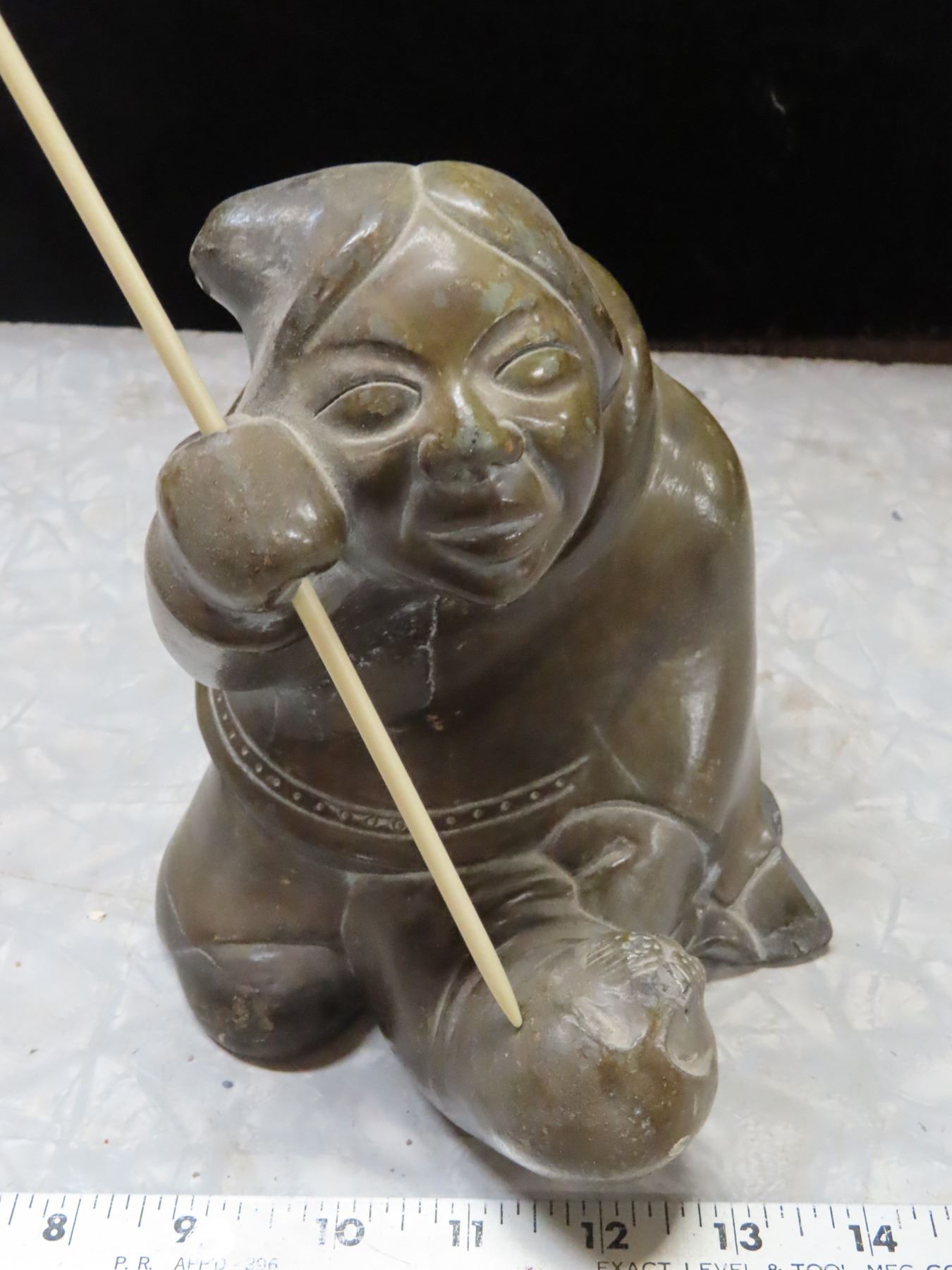 Soapstone style Resin Carving of seal hunter table top decoration