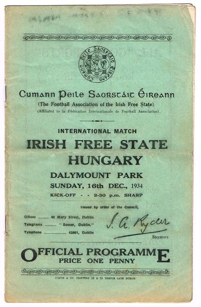 Scarce early international match programme for the Irish Free State against Hungary