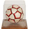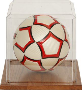 For the really special mementos we have added a real wood, hand-finished base to our classic plastic display case. The base is grooved to fit the case and has a honey oak finish. The display case has crystal clear clarity & beveled edges for beauty. The unique carton features an image of actual grass as well as an image of a real hardwood basketball floor that can be cut out and placed on the bottom of the case for a customized look. This is also a great football display case, a soccer ball display case, a volleyball display case, a glove display case, and a hat display case. For footballs; you can put a kicking tee in the display case and make the football look like it’s sitting on the field. Interior Dimensions: (9-3/4” x 9-3/4” x 9-5/8”)(soccer ball not included)