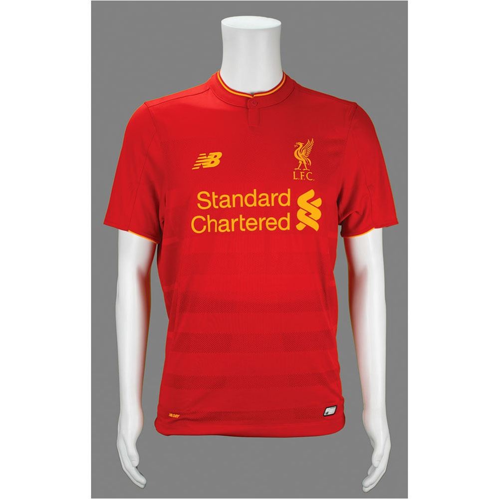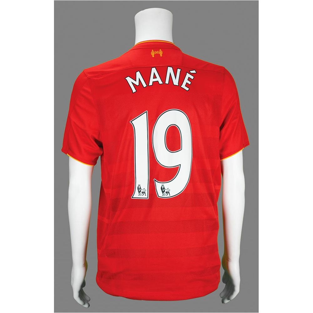 Official Liverpool F.C. home jersey worn by winger Sadio Mane during a match in the 2016-2017 season. The New Balance Dry jersey, size medium, features the LFC logo and sponsors on the chest, and the last name and number “19†on the back. In fine condition, with expected wear from use. Accompanied by a certificate of authenticity from Alexandre Silva da Silveira, a coordinator for the Brazilian National Soccer Team, who affirms that the jersey derives from his personal collection.