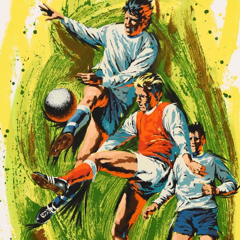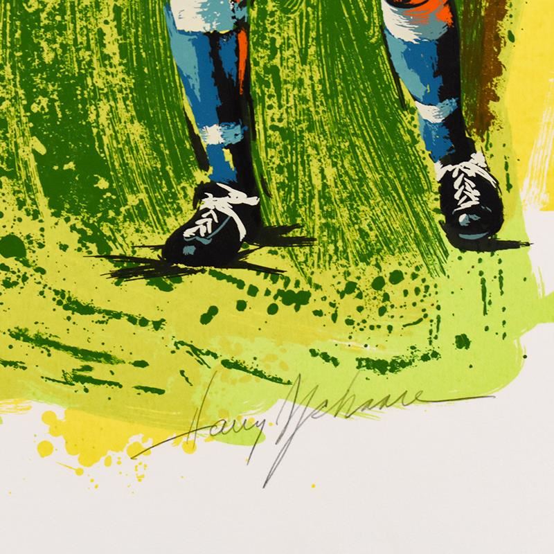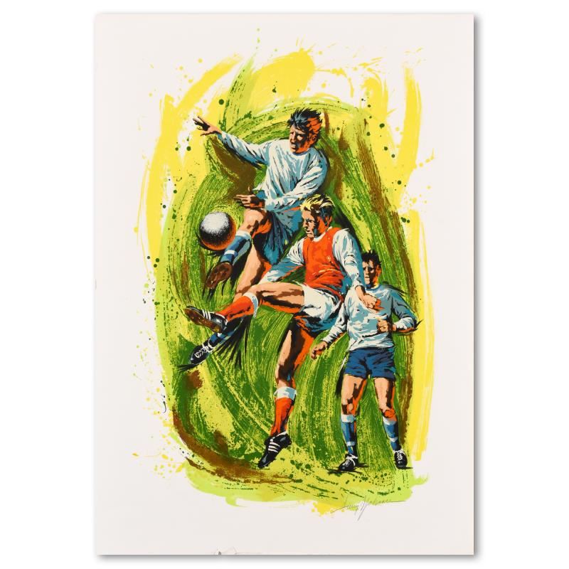 "Soccer" is a limited edition serigraph on paper by Harry Schaare (1922-2008), numbered and hand signed by the artist. Includes Letter of Authenticity. Measures approx. 28.5" x 38.5" (border), 24" x 34" (image). ** Please note: There are minor imperfections in the white border area (smudges, creases) that may be concealed when the piece is framed. **