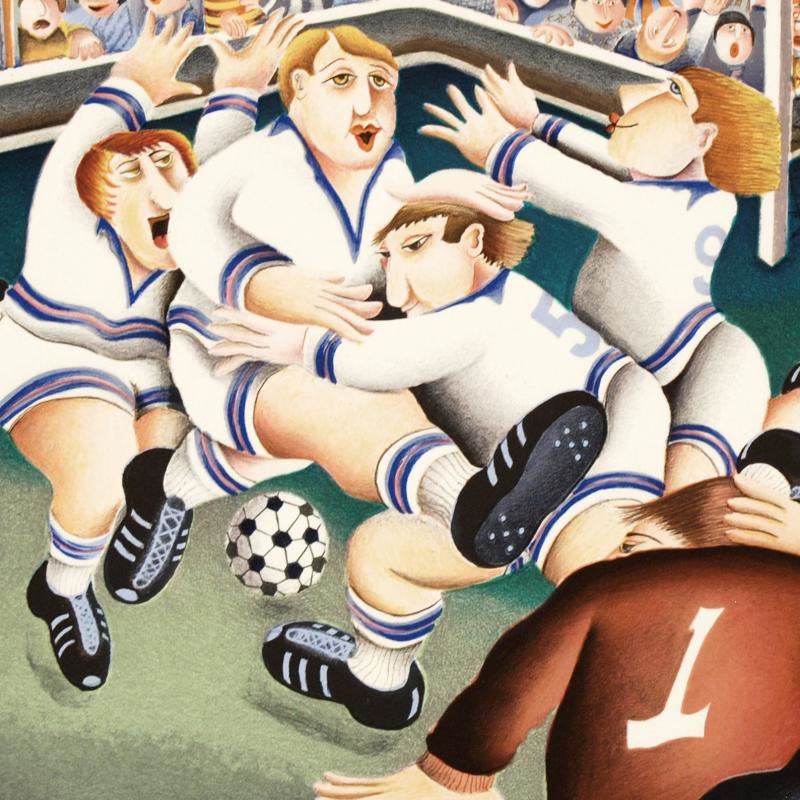 "Soccer" is a limited edition lithograph on paper, numbered and hand signed by Yuval Mahler. Includes Certificate of Authenticity! Measures approx. 21.5" x 15" (with border), 19.5" x 12.5" (image).