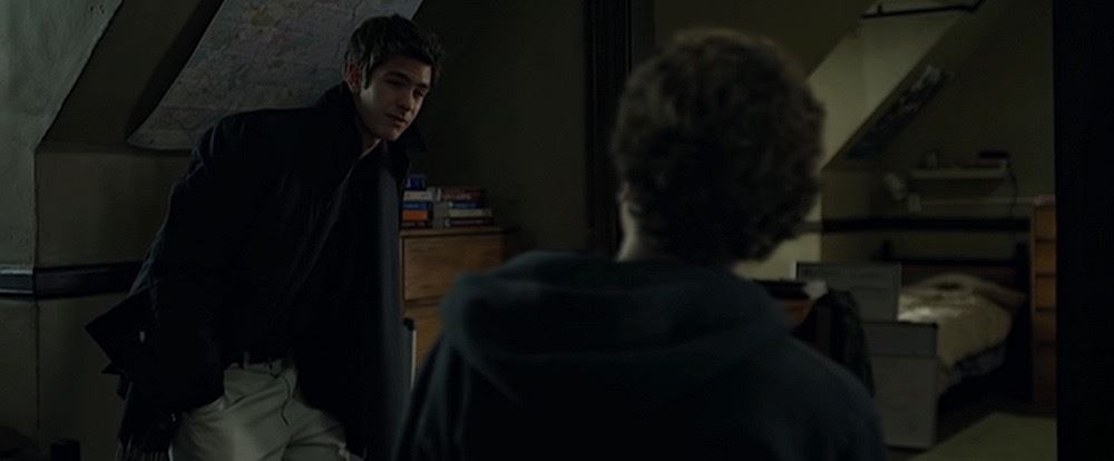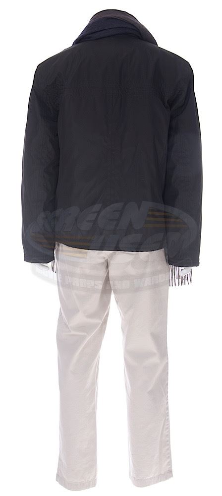 (Columbia Pictures, 2010) This outfit was acquired by the production for use by Andrew Garfield as "Eduardo Saverin". The outfit consists of a size medium black jacket, a size small black long sleeve button down shirt, a scarf and a pair of pants, size 32/32. The jacket, shirt and pants each have "Eduardo" written on the inside. Minor wear from use is present. In addition to our ScreenUsed COA, this outfit comes with two Columbia Pictures COAs, confirming its use during filming.