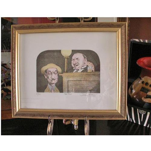 PRESENTING THE WONDERFUL WORLD OF "CHARLES BRAGG" Through the looking glass of an extraordinary artist and social satirist. <p>Presenting, "Night Court". Gilt Framed, Hand signed, Numbered, (#21/150) Limited Edition mixed media watercolor by humorist artist, Charles Bragg. 1931 to Present.<p>ABOUT THE ARTIST:<p>Charles Bragg is both whimsical and humorist in his artistry and over the years has continued to entertain his fans world wide through his clever social satire. <p>Presented is a limited edition, mixed media, hand signed mix media watercolor lithograph that would make a wonderful gift for an attorney, judge or law student. <p>Charles Bragg began his career as an artist in the fifties with limited success through the mid 1960s. In 1968 a successful one-man show made him so popular that his talent and wit emerged making him in high demand on the contemporary art scene. Since that time, he has held solo exhibitions worldwide, and has been frequently published by many major magazines. Charles Bragg's artwork depicts everyday people in everyday life in a whimsical, expressive way for which Charles has received worldwide recognition. His works are part of permanent museum collections around the world. <p>Measurement: 11.5" x 14.5" with border and comes unframed. The actual image is 9" x 6".