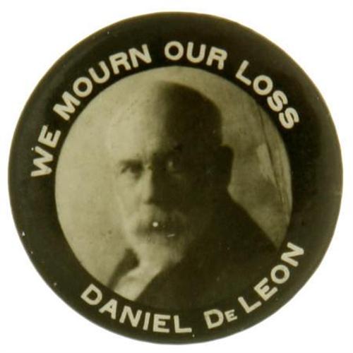<B>Daniel De Leon Memorial Pinback Button “We Mourn Our Loss”, </B></I>1”. De Leon was a Marxist, and argued for the revolutionary overthrow of capitalism. He was a member of the Socialist Labor Party, becoming the editor of its newspaper, <I>The People.</B></I> He died in New York in 1914. <B></B></I><BR><BR><b>Shipping:</b> Miscellaneous Collectibles, Smal (<a target="_blank" href="http://www.heritageauctions.com/common/shipping.php">view shipping information</a>)