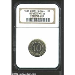 Societe Anonyme essai 5 centimes 1881, Value in circle/Value in circle, VG-3975, Gad-3, MS64 NGC. A scarce, one-year type. Important notice: We expect to be auctioning lots at the rate of 200-250 per hour. Sometimes eBay Premier live bid software cannot keep up with that pace, so we strongly recommend that you place a realistic proxy bid now as insurance to avoid disappointment. Also please note that all Heritage/CAA lots purchased through eBay Premier carry a 20% Buyer's Premium. Please make sure you read the Terms and Conditions.