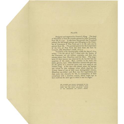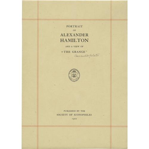 <B>Society of Iconophiles Series IV: Portrait of Alexander Hamilton</B></I> and a view of "The Grange". Two versions of this title are included: a signed artist's proof (eleven issued) and a cancelled plate print. Both are in their original folders with explanatory text, excellent condition. From the Henry E. Luhrs Collection.