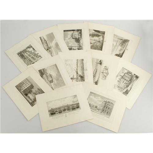 <B>Society of Iconophiles Series IX: Twelve Engravings by W. M. Aikman, Frances S. King, and Sidney L. Smith (1906-1908)</B></I> consisting of one limited edition (100 issued) print of each of the following titles (complete set): <BR><BR>1. A South East Prospect of the City of New York <BR>2. Broadway looking North at Grand Street <BR>3. Clinton Hall, Nassau and Beekman Streets <BR>4. The Custom House, New York 1799-1815 <BR>5. A South West Prospect of the City of New York <BR>6. New Amsterdam About 1650 <BR>7. Columbia College 1784-1857 <BR>8. State Street, Nos. 16-19, About 1864 <BR>9. New York in 1775 from the Atlantic Neptune <BR>10. Broadway and Grand Street from an Oil Painting dated 1830 <BR>11. Grace and Trinity Churches from a Painting by Wm. Strickland <BR>12. St. Paul's Chapel about 1812 from a Painting by Wm. Strickland <BR><BR>Excellent condition, each in its original folder. From the Henry E. Luhrs Collection.