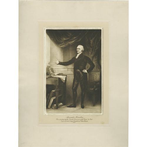 <B>Society of Iconophiles Series XII: One Mezzotint by S. Arlent Edwards (1909)</B></I> containing the following title: <BR><BR>1. Alexander Hamilton (from a painting by John Trumbull) <BR><BR>Included in this lot are two items: one (of eleven) signed artist's proof printed in color, and one (of 75) print in sepia. Both are in excellent condition. From the Henry E. Luhrs Collection.