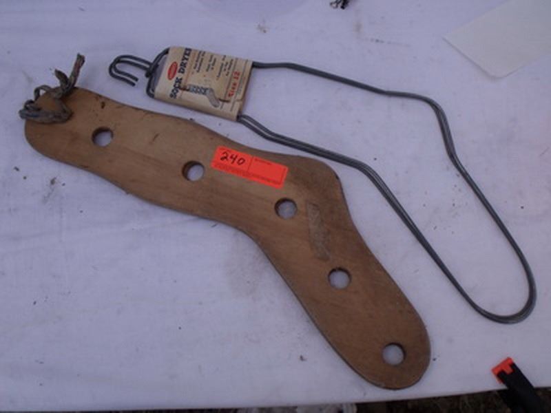 1 metal set of sock dryers in orignal packaging plus 1 pair of wooden sock dryers