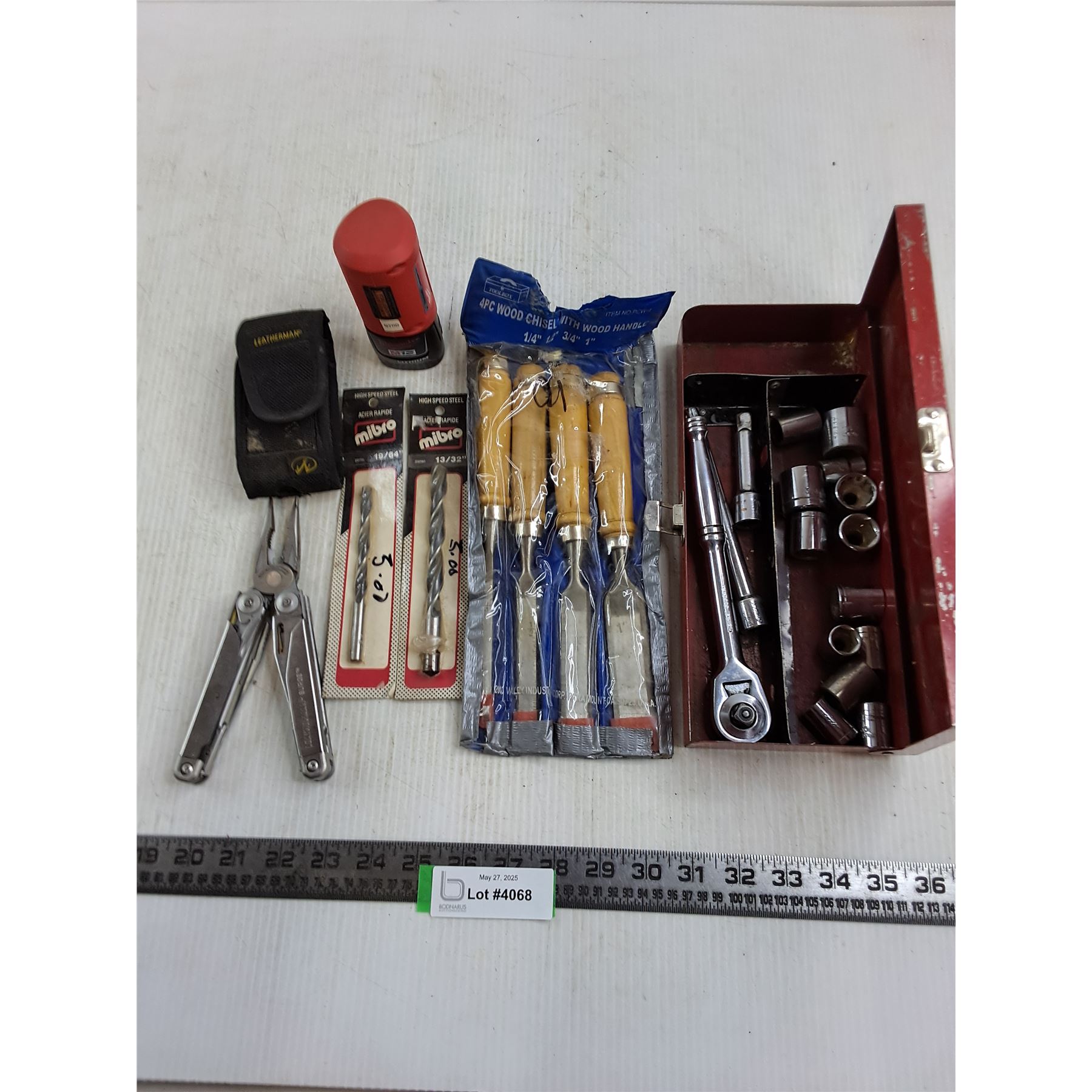 Socket Set, Chisel Set, Leatherman Multi-Tool, Misc.