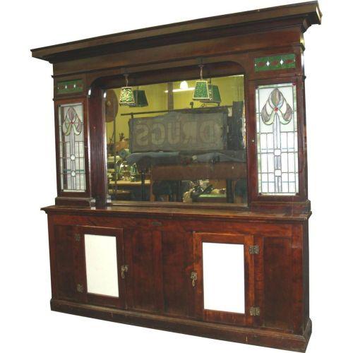 Soda Fountain front & Back Bar with Leaded Glass milk Glass. Back is 8'4" tall 8'6" wide 16" deep. Front is 36" tall 8' wide 26" deep with brass foot rail