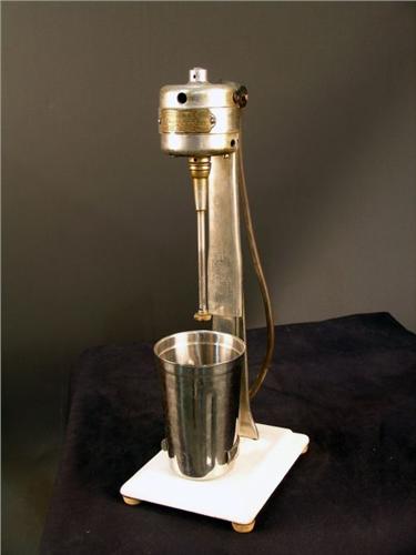 Soda fountain milk shake machine; Dumore milkshake on porcelain base w/can SN3066