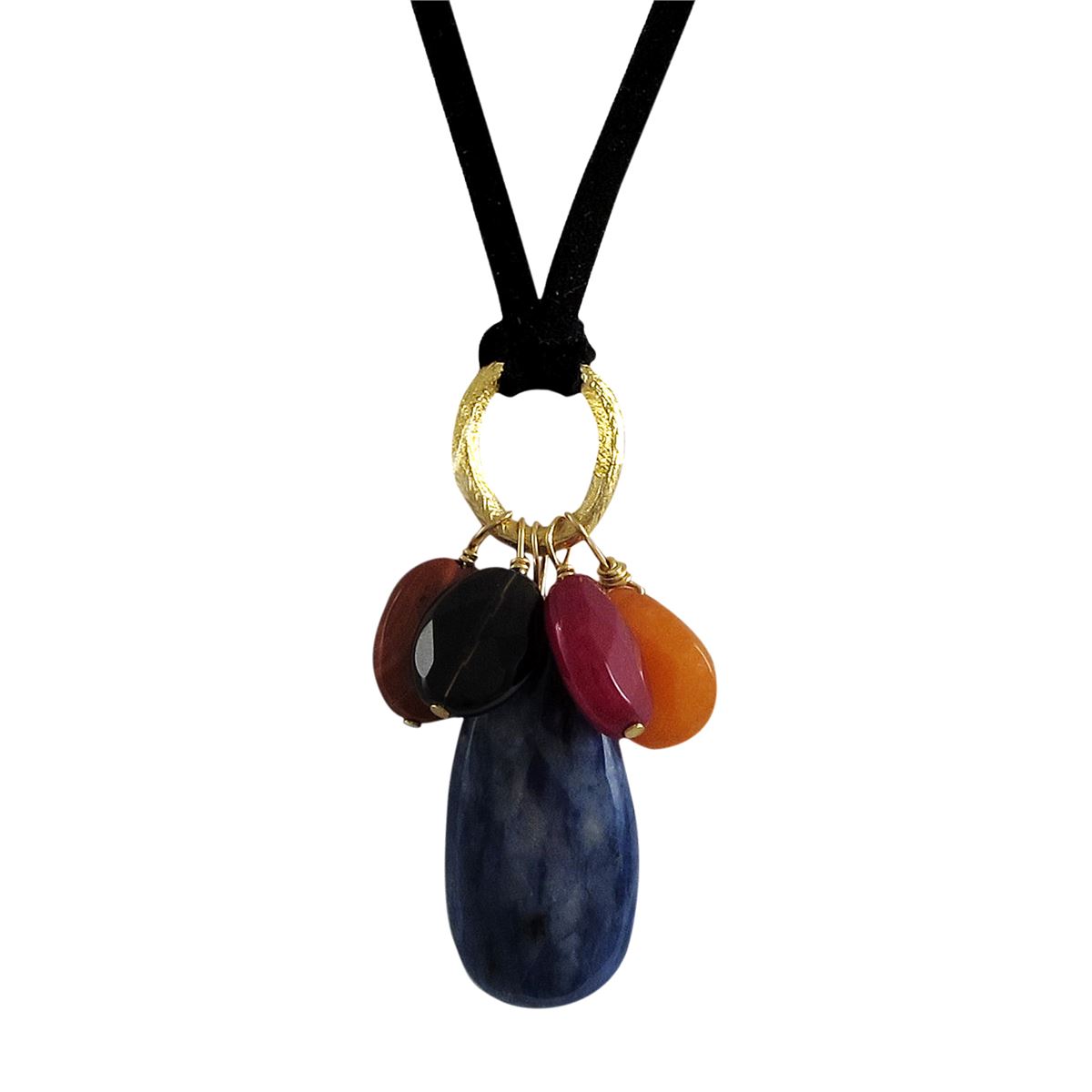 Sodalite (Blue) Combination Semi Precious Stones On Black Suede Chain Necklace -20"