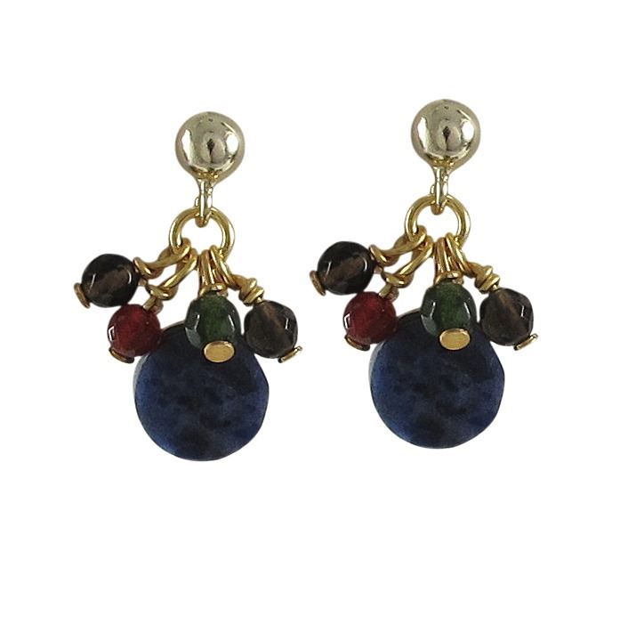 Sodalite (Blue) Combination Semi Precious Stones On Gold Filled Post Earrings, 1"