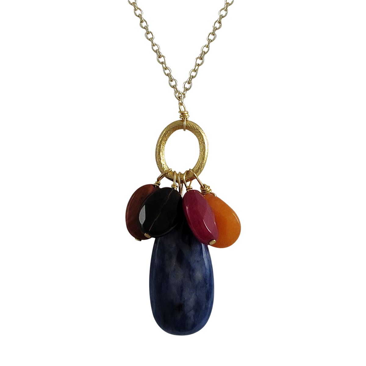 Sodalite (Blue) Combination Semi Precious Stones On Gold Tone Brass Chain -16" 2"