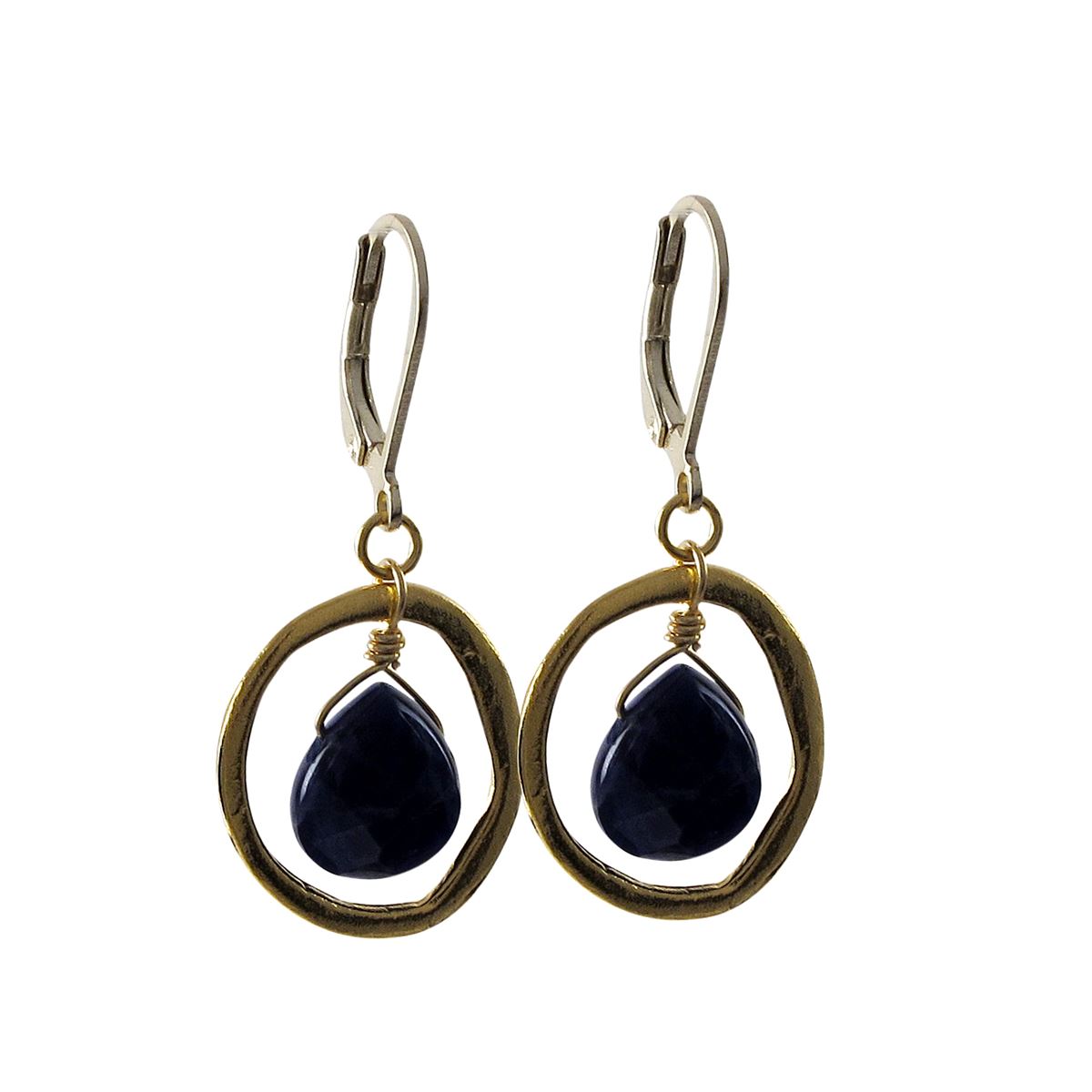 Sodalite Semi Precious Stone On Gold Tone Brass Lever Back -1.2"