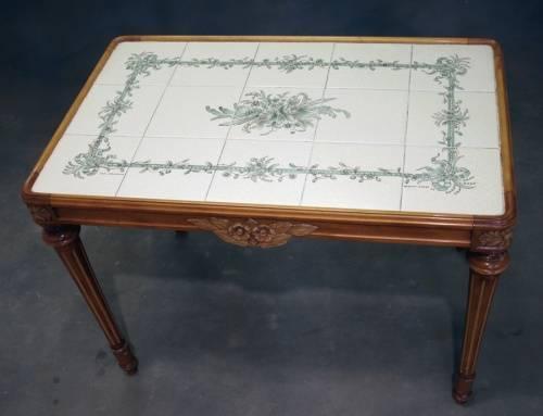 Soffbord med handmålade kakelskivor signerat: Tor Carlsson Upsala Ekeby kakelskivor 45x75