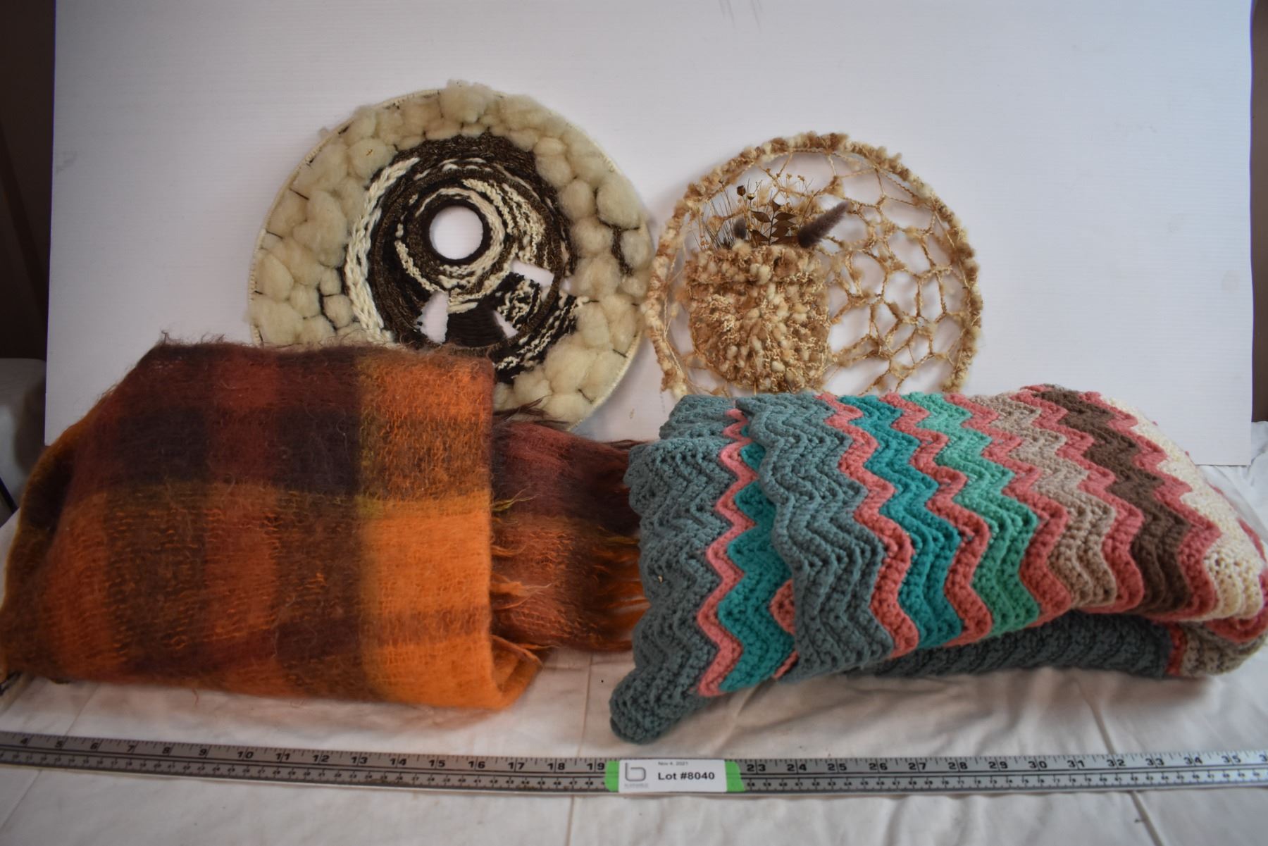 Soft Wool Blanket (5' x 3'), Soft Crocheted Blanket (6' x 4'), and Wall Hangings