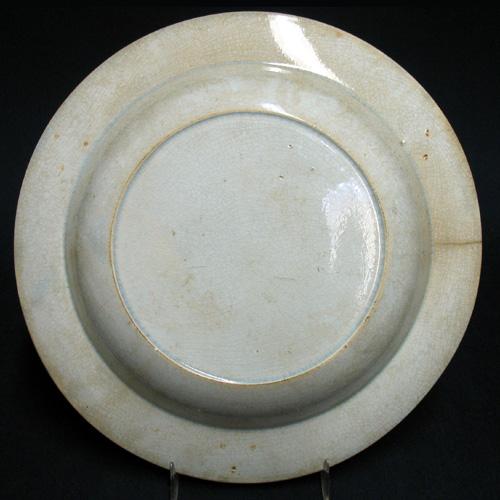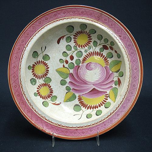 Soft paste soup plate; hand painted floral design; early 19th C.; 2" high x 10" diameter (overall crazing and rim crack)
