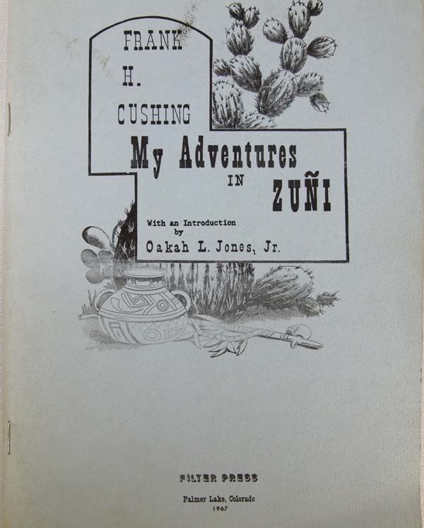 Softback Reference Books, Native American Interest, #1 Frank H. Cushing, My Adventures in Zuni with an introduction by Oakah L. Jones, Jr., c. 1967 Filter Press, #2 Families in Pueblo Pottery by 1974 University of NM Press, small tear in lower right corner of cover, #3 Designs on Prehistoric Hopi Pottery by Jesse Walter Fewkes, c. 1973 Dover Publications, #4 Santa Clara Pottery Today by Betty LeFree, c. 1975 University of NM Press, #5 Hopi Dyes by Mary-Russell Ferrell Colton, c. 1965 Museum of Northern Arizona Press, #6 Mexican Masks From the Southwest Museum Collection, c. 1988 Hillcrest Press, #7 News from Native California an inside view of the California Indian World Volume 10 Number 2 Winter 1996/97, #8 American Indian Art: Form and Tradition, c. 1972 E.P. Dutton and Co., Inc., New York (this book has a handwritten message inside)