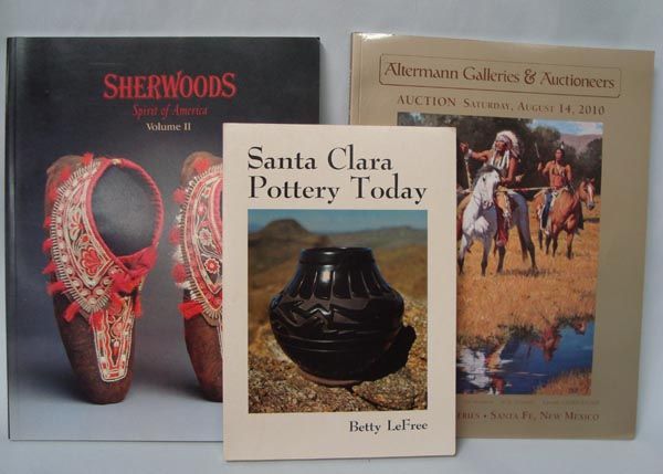 Softback Reference Books, 1.''Santa Clara Pottery Today'' by Betty LeFree Copyright 1975. 2. Altermann Galleries & Auctioneers Auction Catalog AUCTION Saturday, August 14, 2010 3. Sherwood's ''Spirit of America'' Volume II Auction Catalog, largest book measures 11'' x 8.5''.