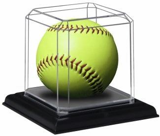 This product is injection molded, using water-clear polystyrene. The result is a very clear, hard (rigid) plastic container, that displays the contents well. Perfect For your collectible softball. Comes with Grass insert for black base. Overall Size - 4x 4x 4.125. A great way to display your softball. (softball not included)
