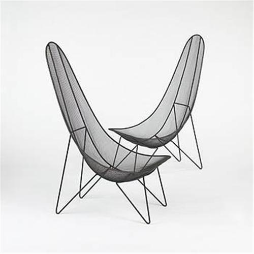 Sol Bloom Scoop chairs, pair New Dimensions Furniture USA, 1950 enameled wire and metal mesh 24.5"w x 32"d x 48.5"h