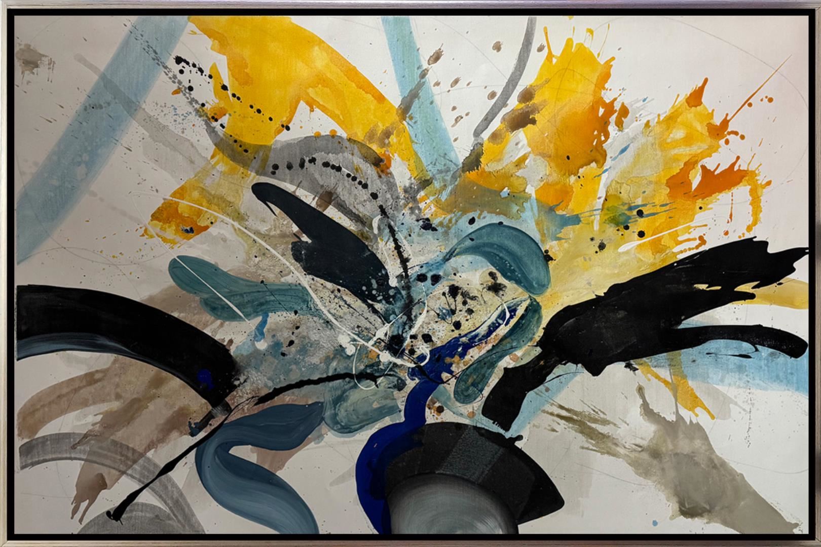 This phenomenal original acrylic on canvas stands as a testament to artistic mastery, capturing the viewer with its captivating interplay of colors and form. Hand signed by the artist, this artwork comes framed and readt to hang. Art size 70x45" framed size 72x47"
