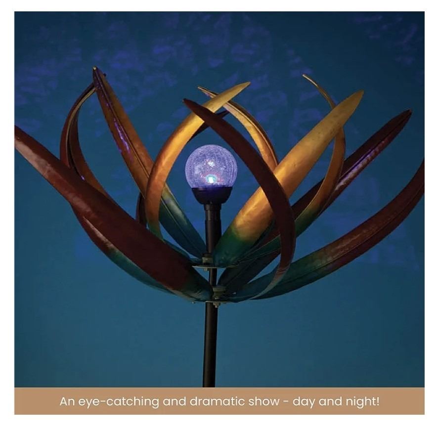Bits and Pieces, Muilt Colored Tulip Wind Spinner With Solar Light In Middle