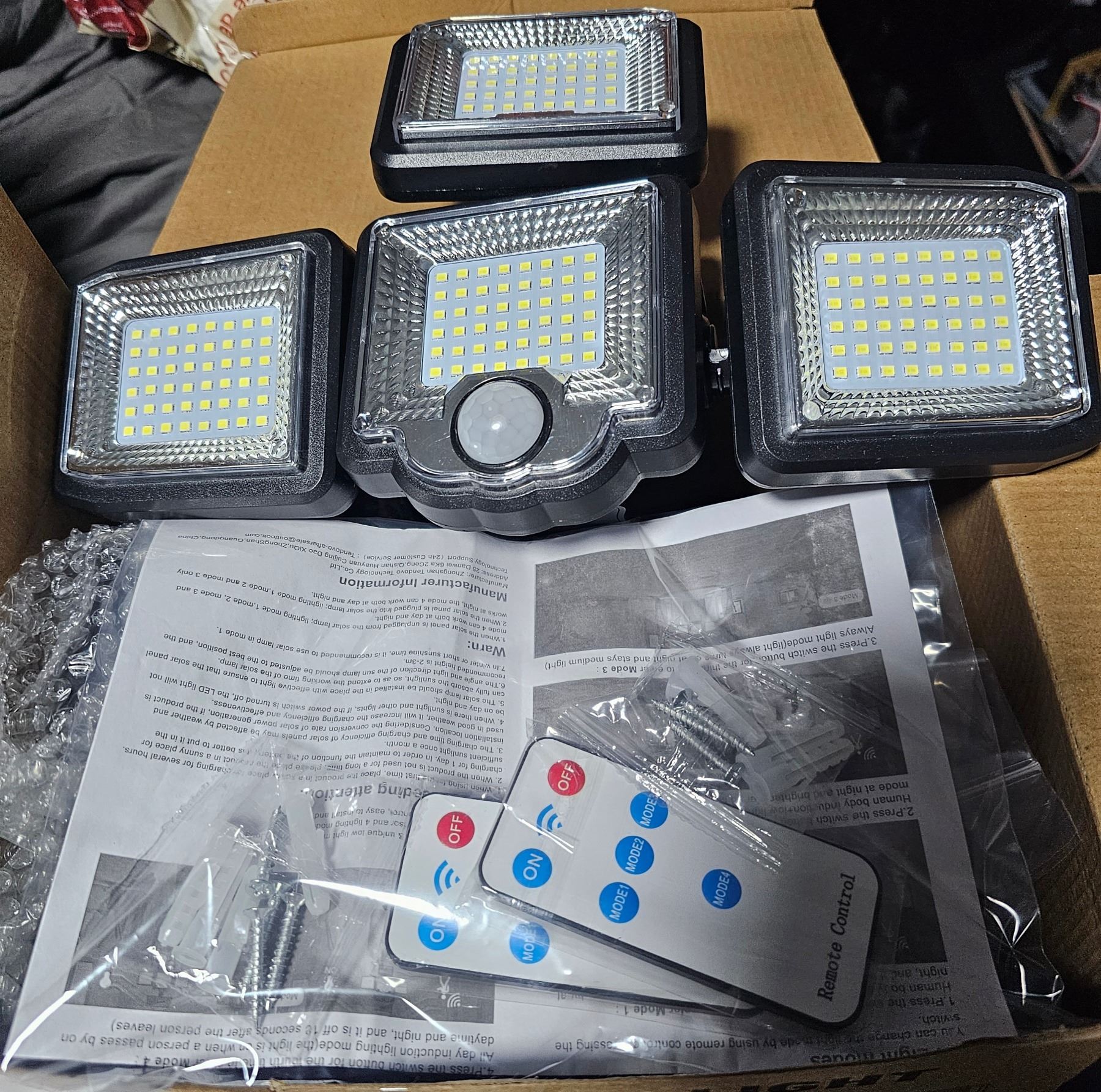 Solar Sensor Lights, 2 Pack, With Remote Control, Detects Movement Lights Go On, Open Box, Like New Condition