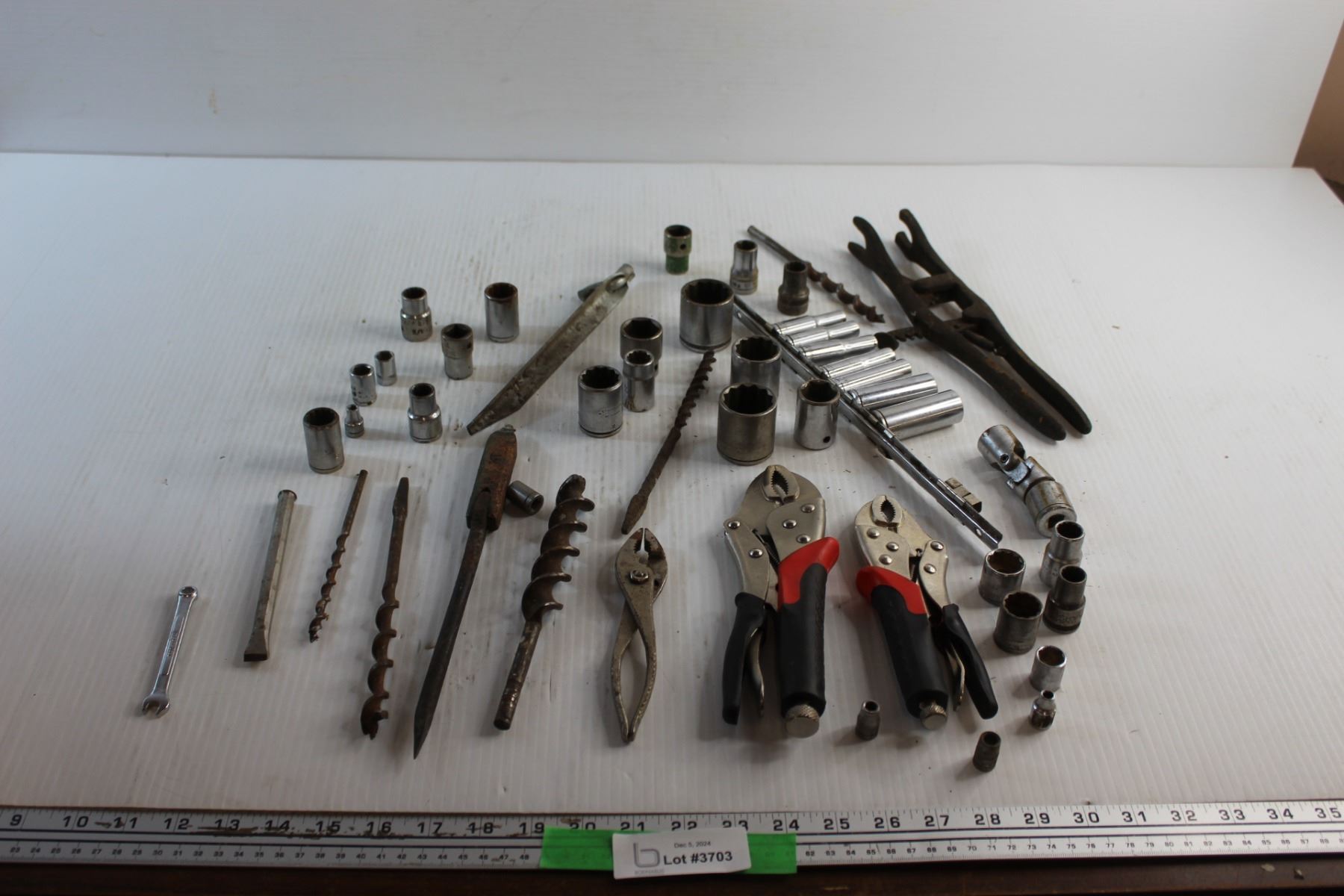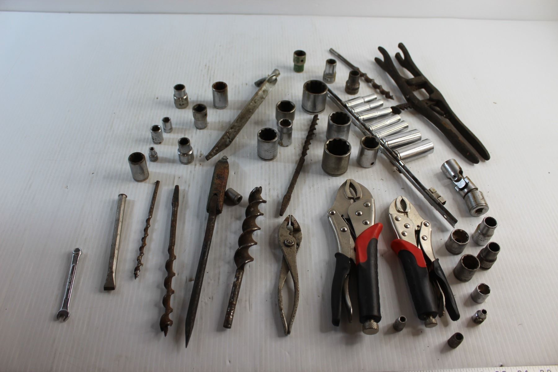 Soldering Iron, Sockets, Pliers, Chisel and Wrench