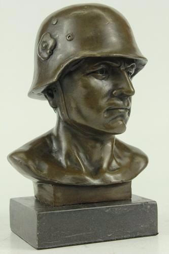 Bust Of A German Soldier. . Bronze Dimensions With Marble Base: Height 6 X Width 4 inches. Weight: 5 Lbs.