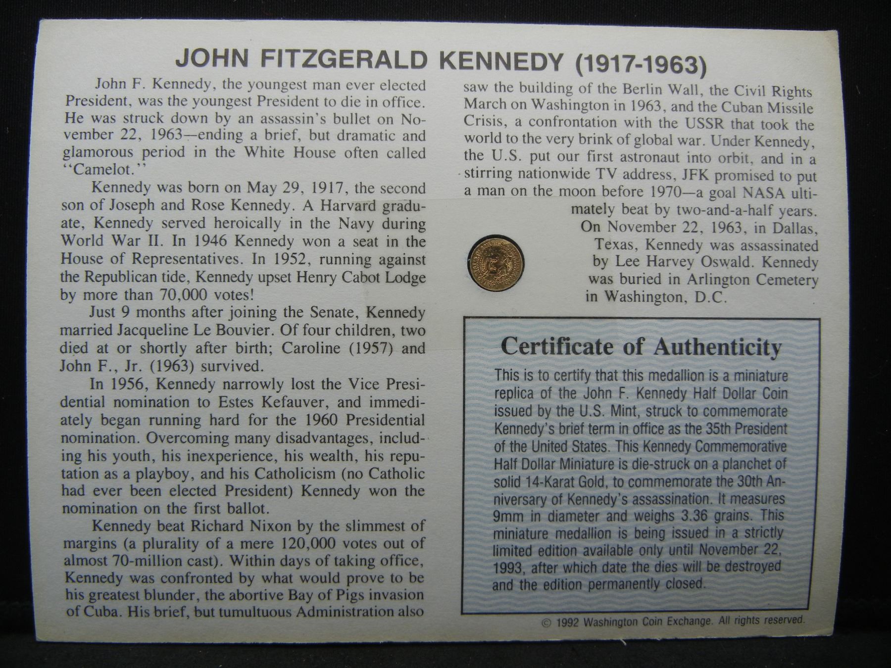 Solid 14 Karat Gold John F Kennedy Commemorative Half Dollar