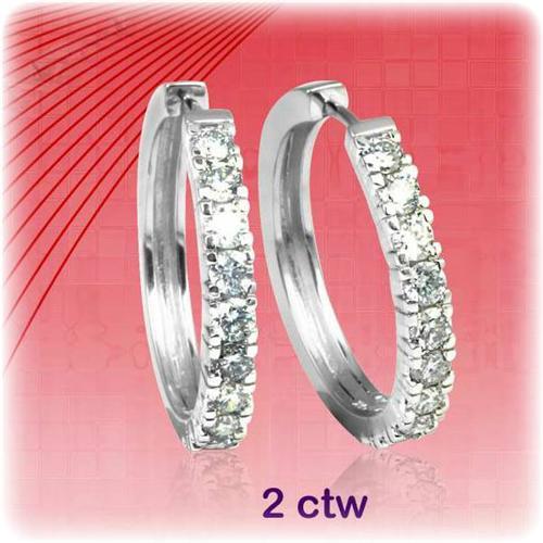 Gorgeous! Big Genuine Diamond Hoop Earrings boast 2 Carats Total Weight, set in 14 Karat White Gold. These expensive beauties create lots of sparkle! Natural, brilliant cut Diamonds. <p> We bought a "lot" of Close Out Items from a Premiere Retail Chain that went out of business in California recently. We're able to pass our HUGE savings on to YOU! Please note, our quantities are very limited and we will not be able to offer this item again, once it is sold out.<p> Please see our excellent feedback and satisfaction guarantee below. Click on photos to enlarge and view detail. Thanks for your patronage!