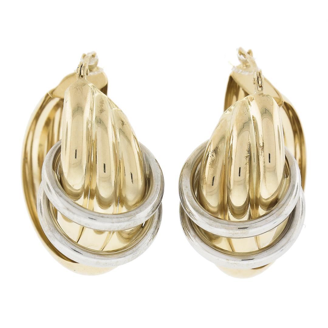A solid 14k yellow & white gold hoop earrings. The earrings measure approximately 25.2x14mm and weigh a total of 5.06 grams.
