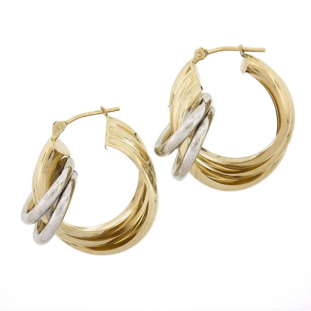 A solid 14k yellow & white gold hoop earrings. The earrings measure approximately 25.2x14mm and weigh a total of 5.06 grams.