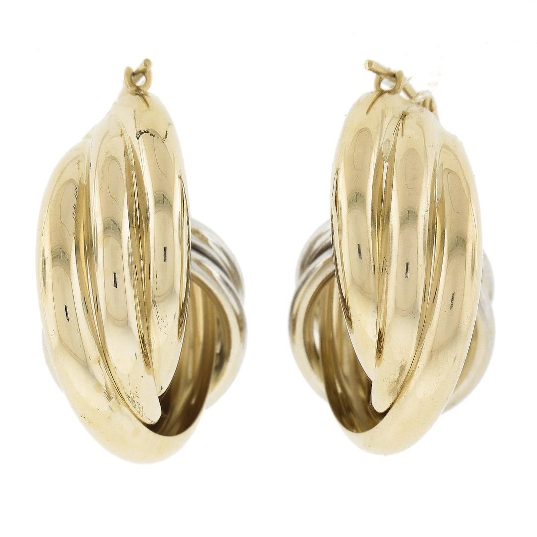 A solid 14k yellow & white gold hoop earrings. The earrings measure approximately 25.2x14mm and weigh a total of 5.06 grams.