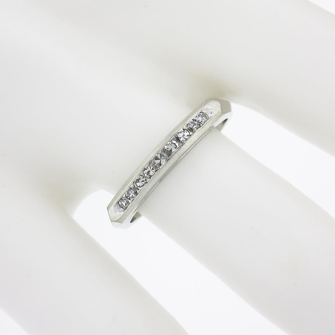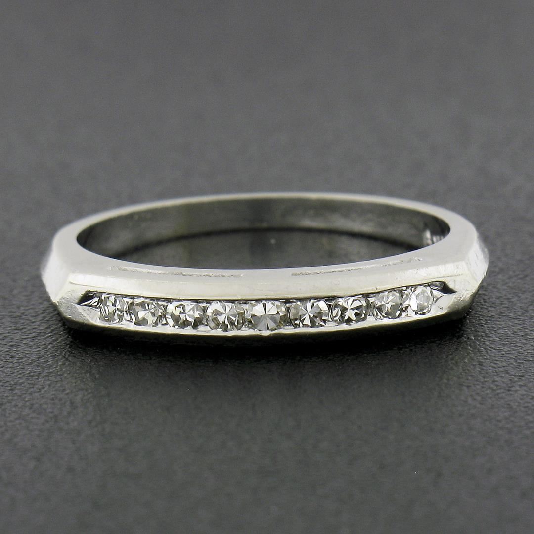 A solid 14k white gold band ring, with 9 old single cut natural diamonds (G/H - VS1/VS2 ; 0.15ctw). The ring is size 6.5, weighs a total of 2.78 grams, and measures 3mm wide.
