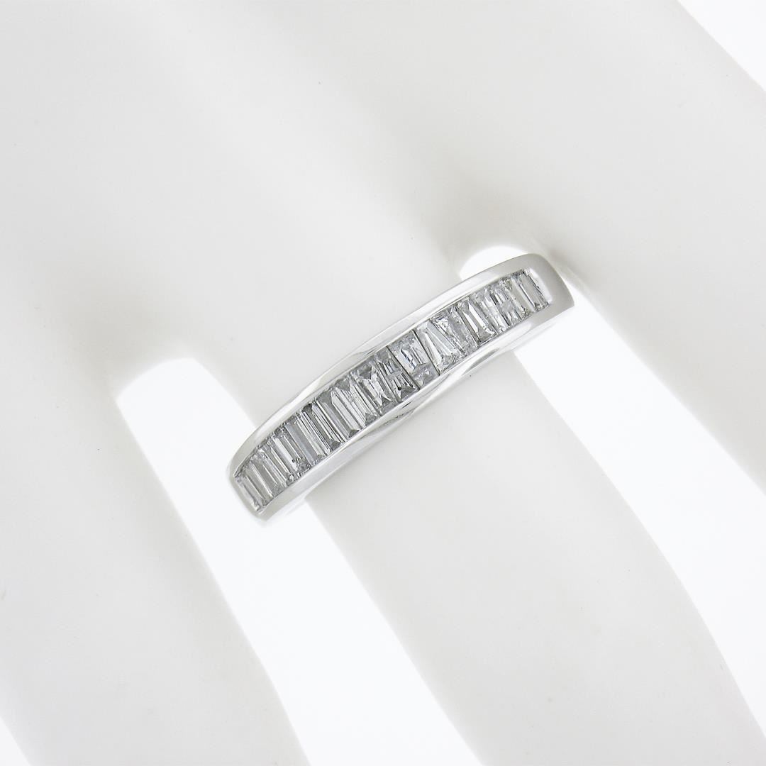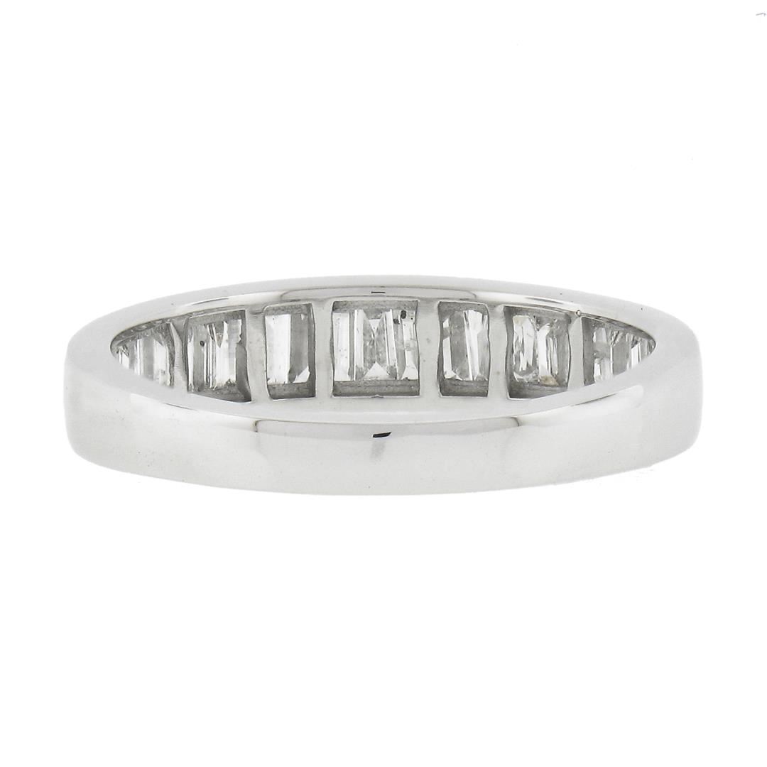 A solid 14k white gold stack band ring, with 19 baguette cut natural diamonds (F/G - SI1-I2 ; 0.60ctw). The ring is size 7.0, weighs a total of 2.83 grams, and measures 4.6mm wide.