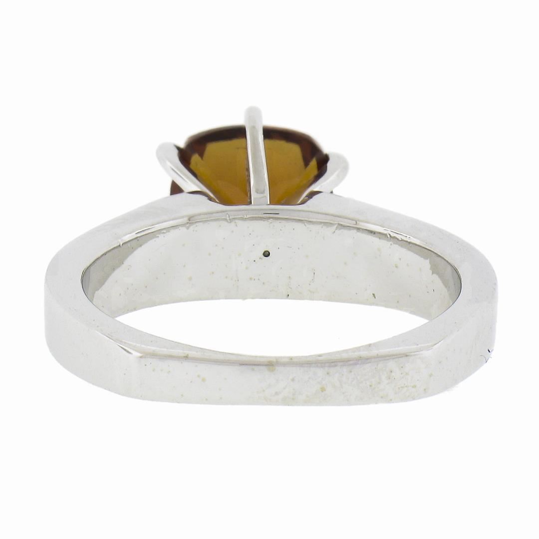 A solid 14k white gold ring, with 1 cushion cut natural cirtine (7.8x8mm), and 2 round cut natural diamonds (H/I- VS1/VS2 ; 0.40ctw). The ring is size 6.75, weighs a total of 6.60 grams, and measures 9.9mm wide.