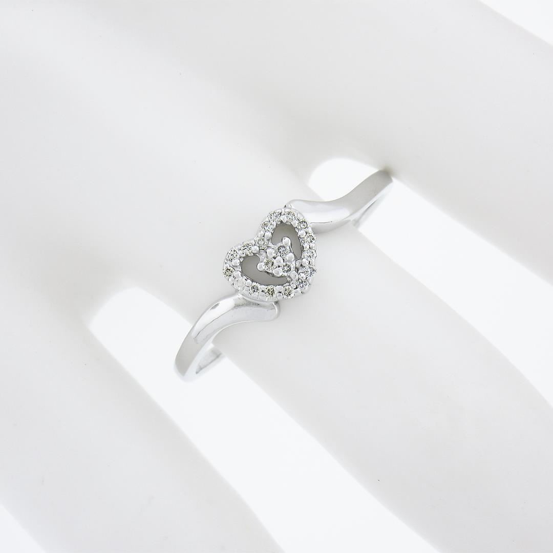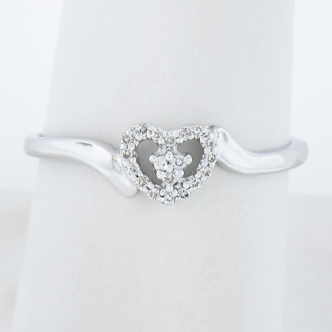 A solid 14k white gold heart ring, with 19 round cut natural diamonds (G/H - VS2-SI2 ; 0.25ctw ). The ring is size 10.0, weighs a total of 1.83 grams, and measures 6.1mm wide.