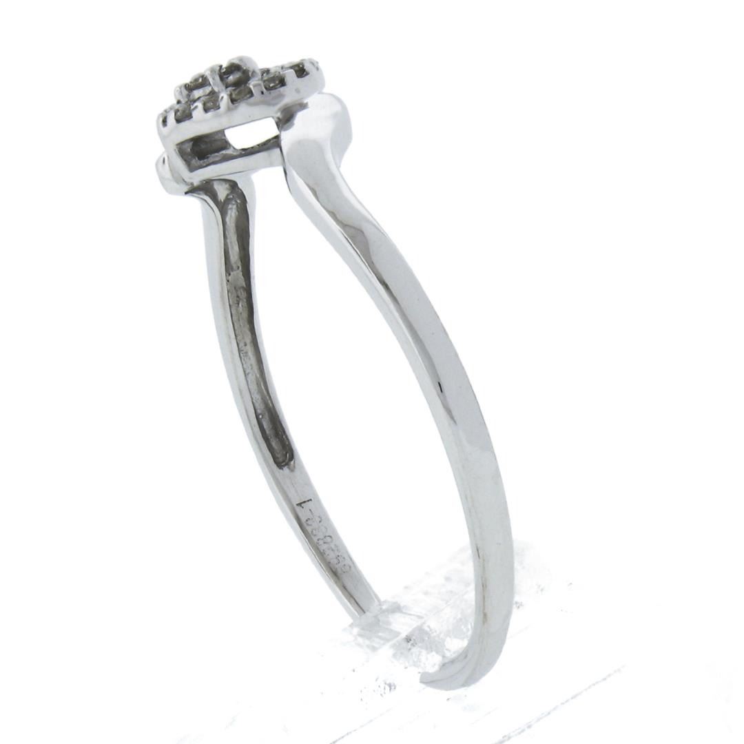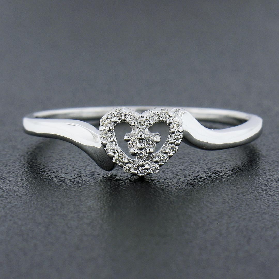 Solid 14K White Gold Polished Open Heart Band Ring w/ 0.25 ctw Pave Set Diamonds