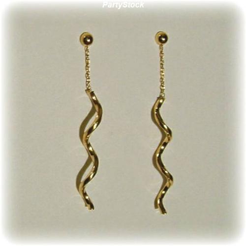 POLISHED, SOLID 14K YELLOW GOLD DANGLE EARRINGS! The corkscrews are attached to approx. 1/2 inch chain which adheres to the post. This allows for much movement and energy from the earrings when worn.<BR><BR><P><b>Please see our excellent feedback and satisfaction guarantee below. Click on photos to enlarge and view detail. Thanks for your patronage!