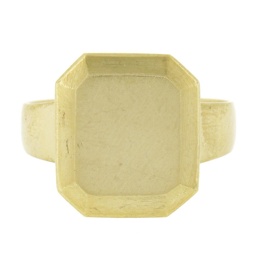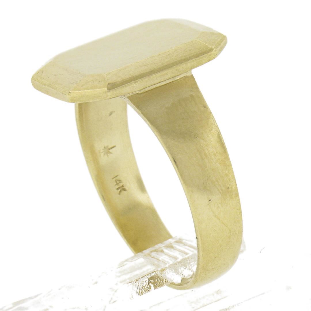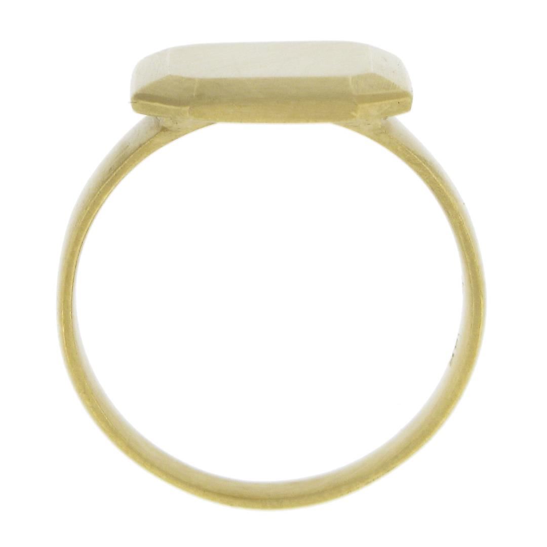 Solid 14K Yellow Gold Rectangular Engravable Center Matte Finish Signet Ring