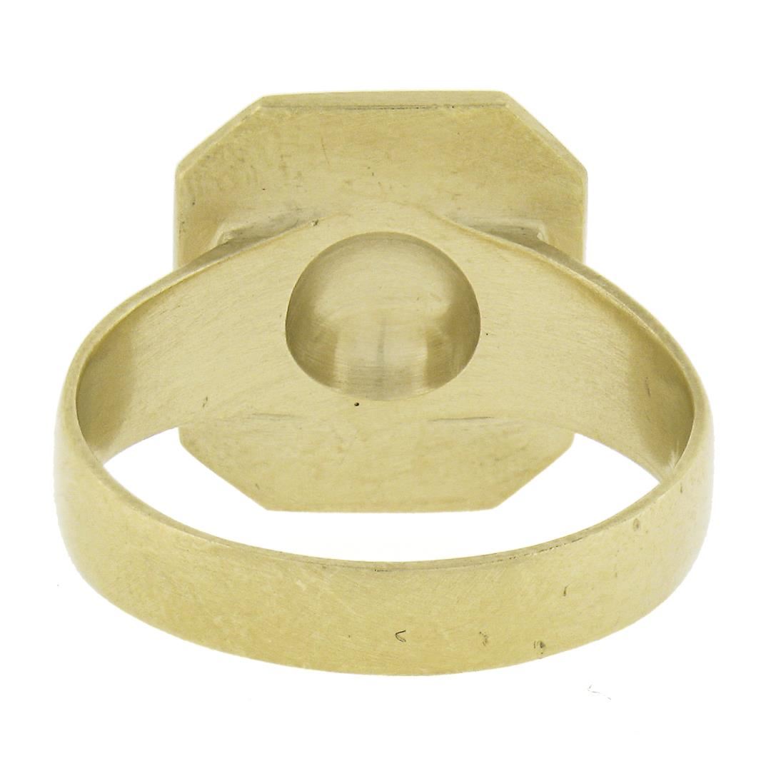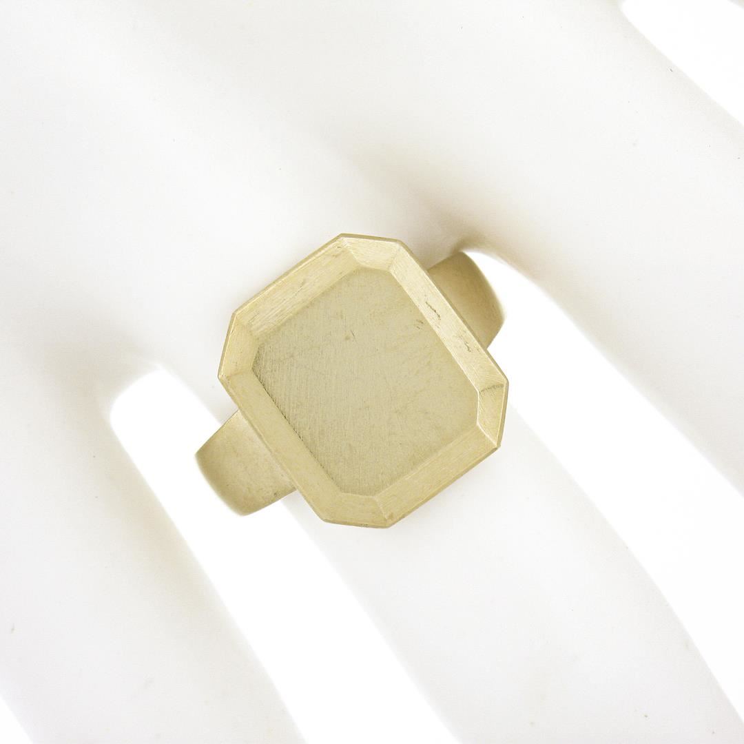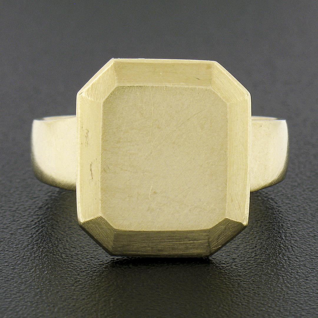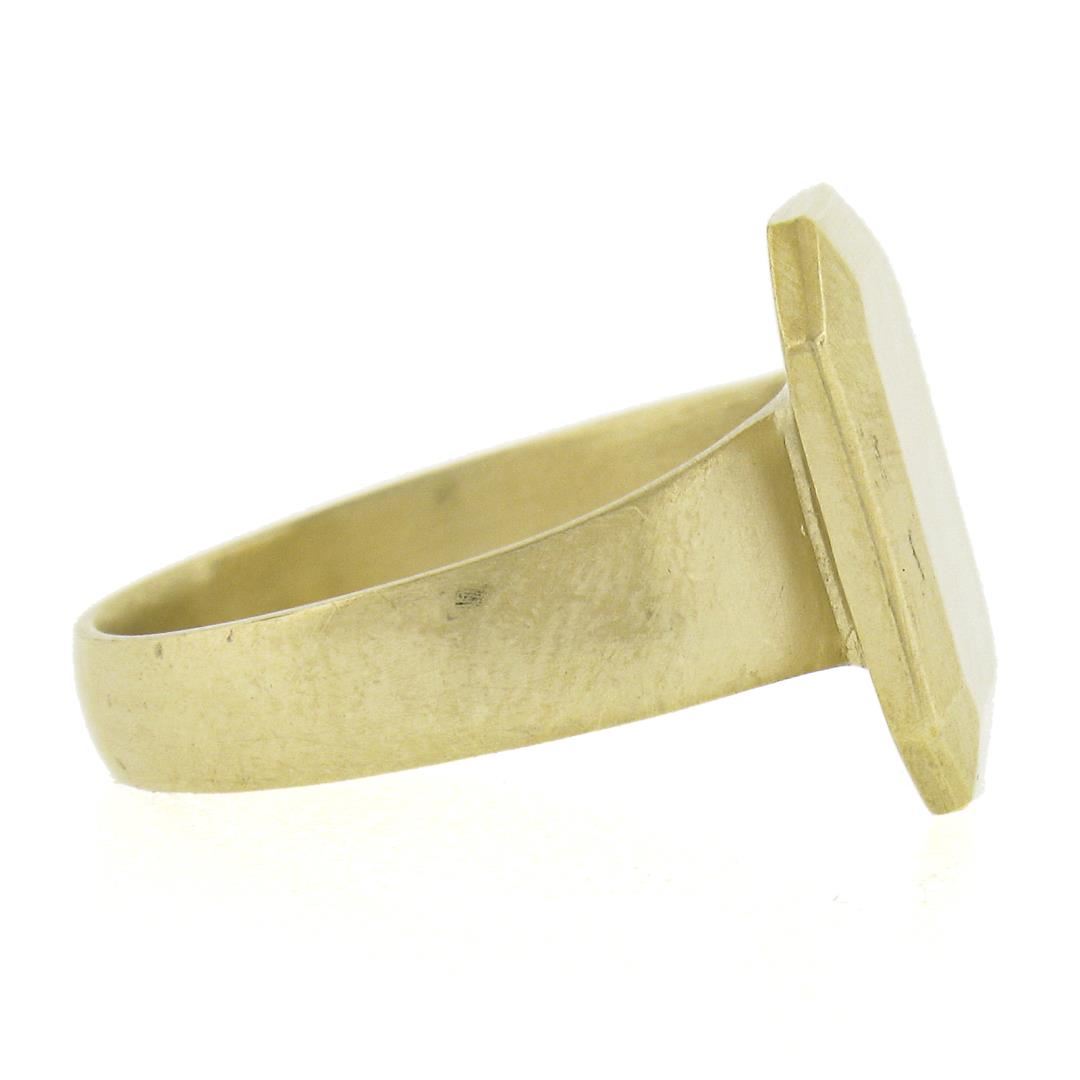 Solid 14K Yellow Gold Rectangular Engravable Center Matte Finish Signet Ring