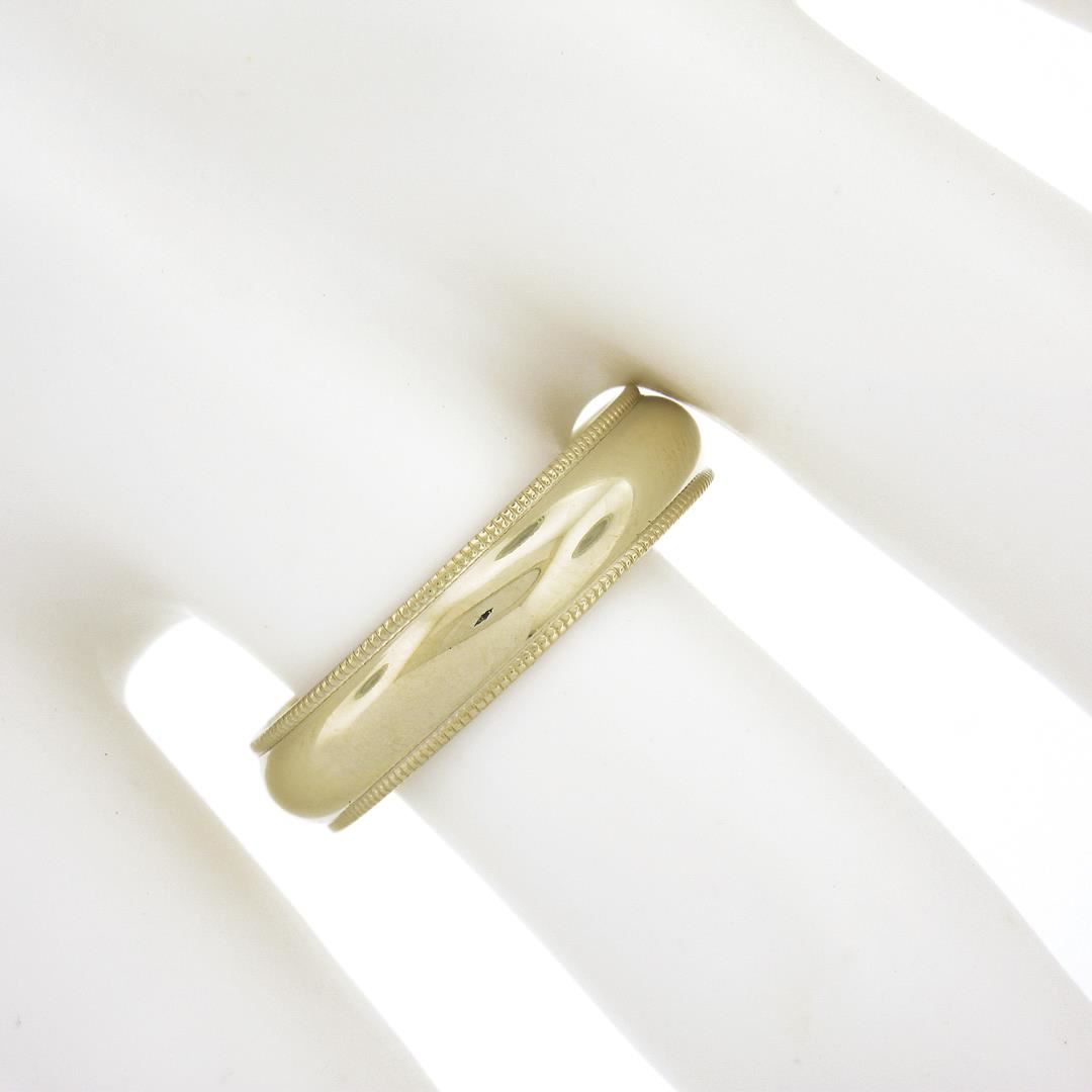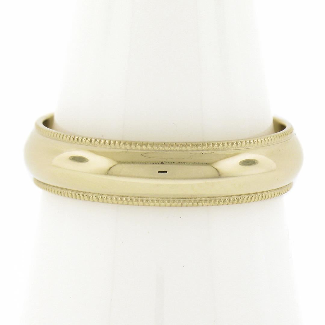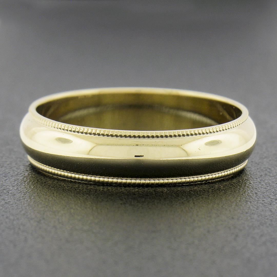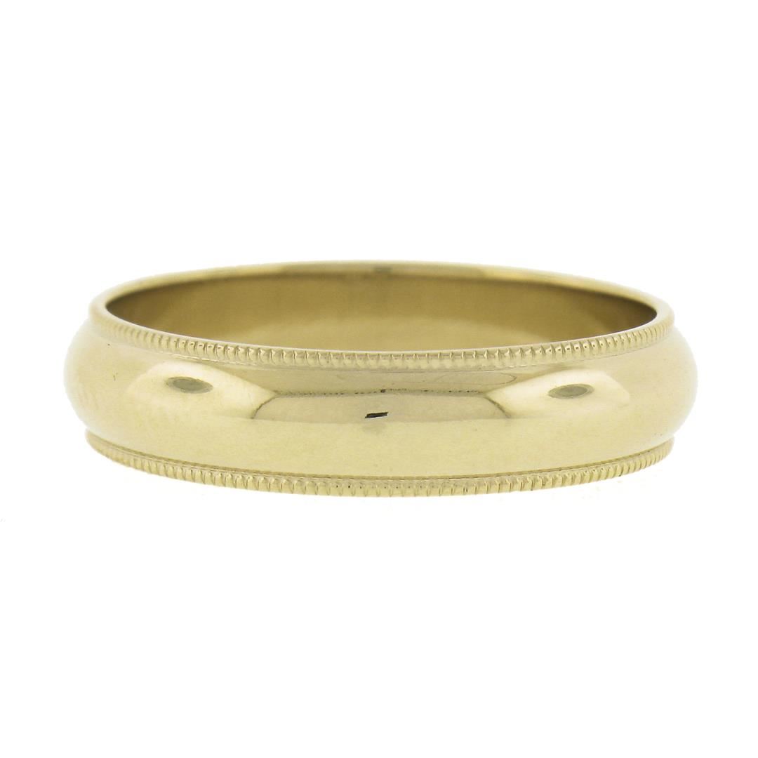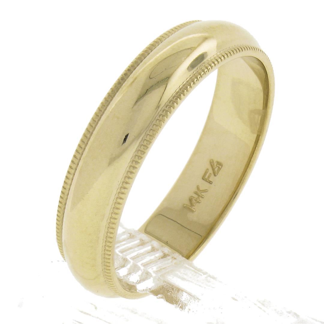 Solid 14k Gold 4.8mm Wide Domed Polished w/ Milgrain Stackable Wedding Band Ring